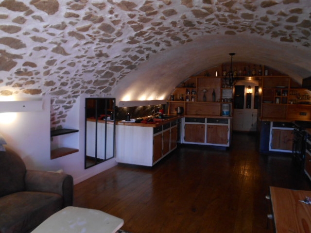 Maison de village en duplex, composée de 3 pièces principales et bureau. Beau séjour voûté intégrant une cuisine aménagée et équipée et son cellier. Deux chambres et Deux salles d'eaux. Grand garage aménagé. Très belles prestations raffinées.Vue dégagée au calme. (Superficie Totale 120 m2 environ) DPE en cours. Rare à SAISIR....!