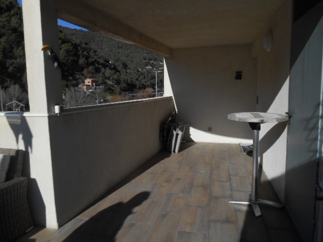 Description :Appartement de 3 pièces avec coin cuisine aménagée et équipée ouvert sur séjour. Configuration en duplex qui dispose d'un toit terrasse de 28 m2 semi-couvert. Bonnes prestations optimisées. Climatisation réversble. Grand garage en angle.